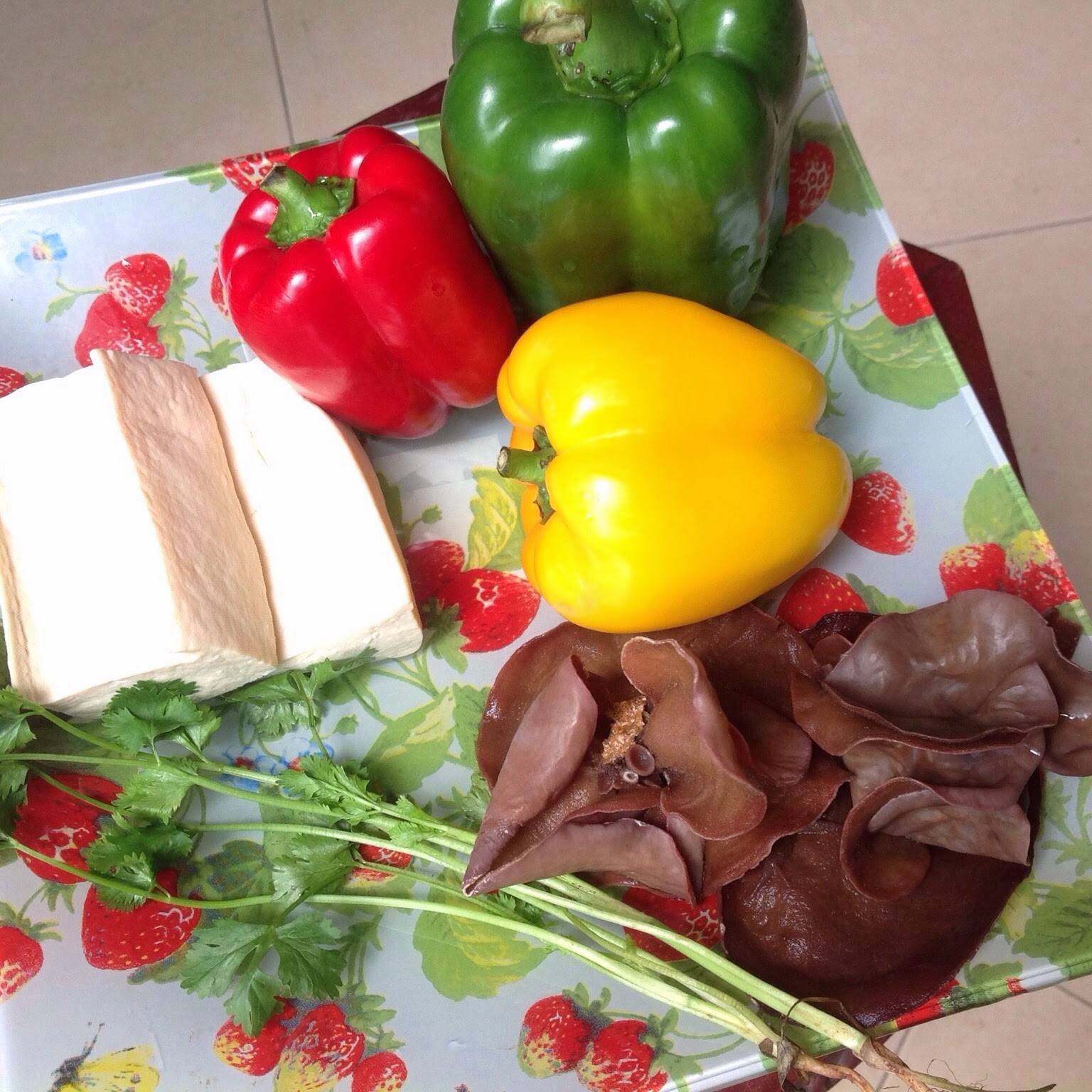 - 3 quả ớt chuông (màu xanh, đỏ, vàng)